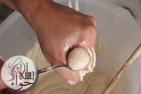 - قومى بأحضار ملعقه ووضعها فى أناء صغير به زيت حتى تأخذى العجين بتلك الملعقه الى مقلاه الزيت الساخن دون أن يلتصق العجين فى الملعقه.