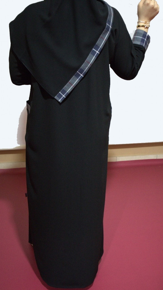عباية جيوب في الجنب مع تحديد كاروهات في الجيب وأطراف الكم مع الطرحة